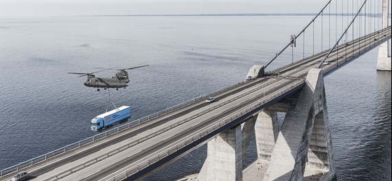 Last week, the management of Danske Fragtmænd decided to invest in two large freight helicopters which are to airlift Danske Fragtmænd lorries over motorway queues. The helicopters start operating already next week.